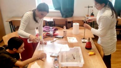 Učenice osmog razreda OŠ Đurđevac Barbara Blažeković, Ema Mikulić i Nela Brkljačić u pratnji učiteljice Kemije Ivane Remetović i učiteljice…