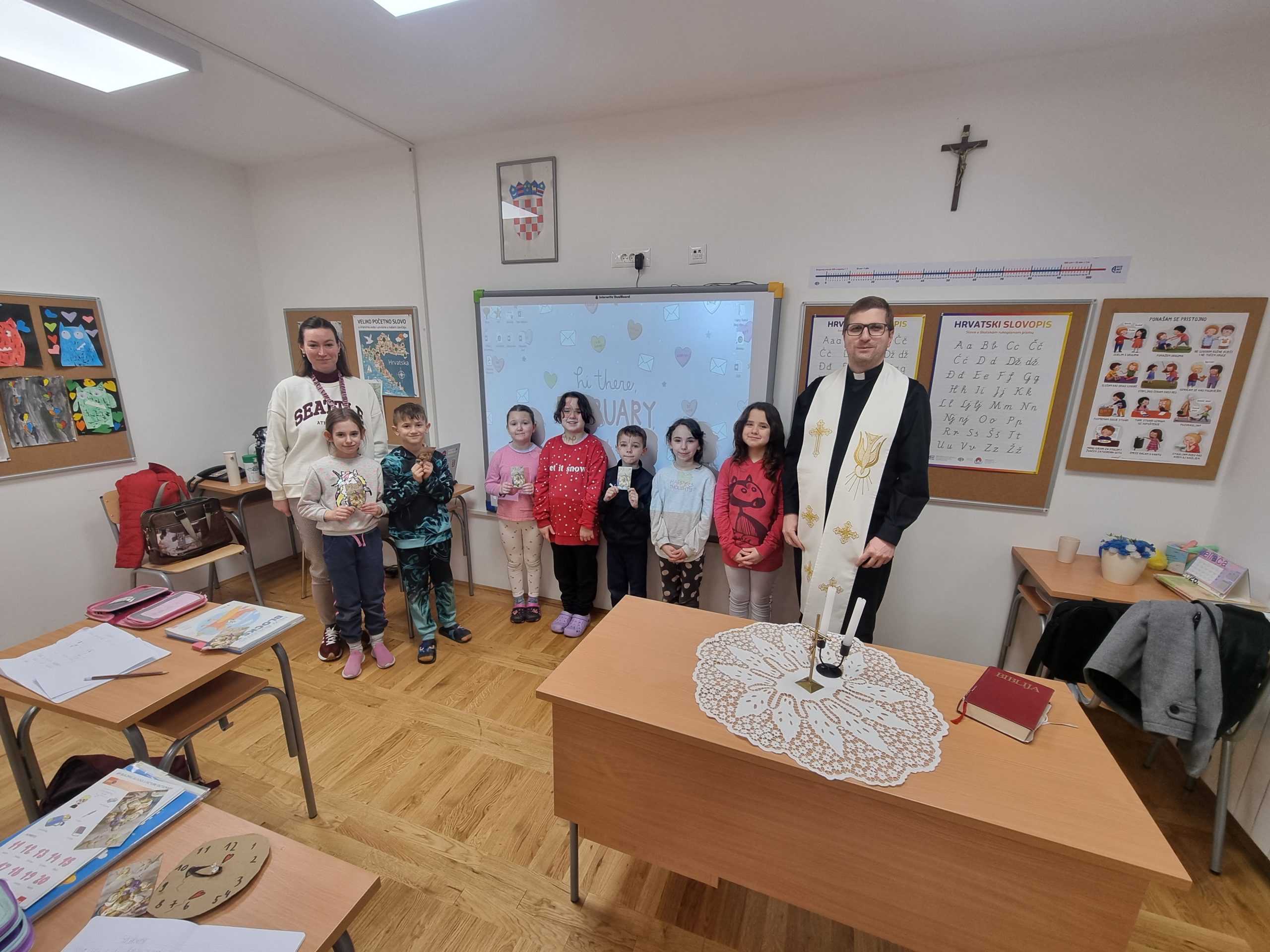 Velečasnog su u svakoj školi srdačno dočekali učenici od prvog do trećeg razreda zajedno s vjeroučiteljicom Martinom Rukavinom. Učenici su za ovu prigodu pripremili pjesmu „Isuse, volim te”, koju su otpjevali uz pokrete, unoseći radost i toplinu u zajedničko slavlje. Velečasni je pozdravio učenike, vjeroučiteljicu te učiteljice Klaru Kuštro, Olgu Lazar i Dariju Car, zahvalivši na lijepom dočeku i zajedništvu.