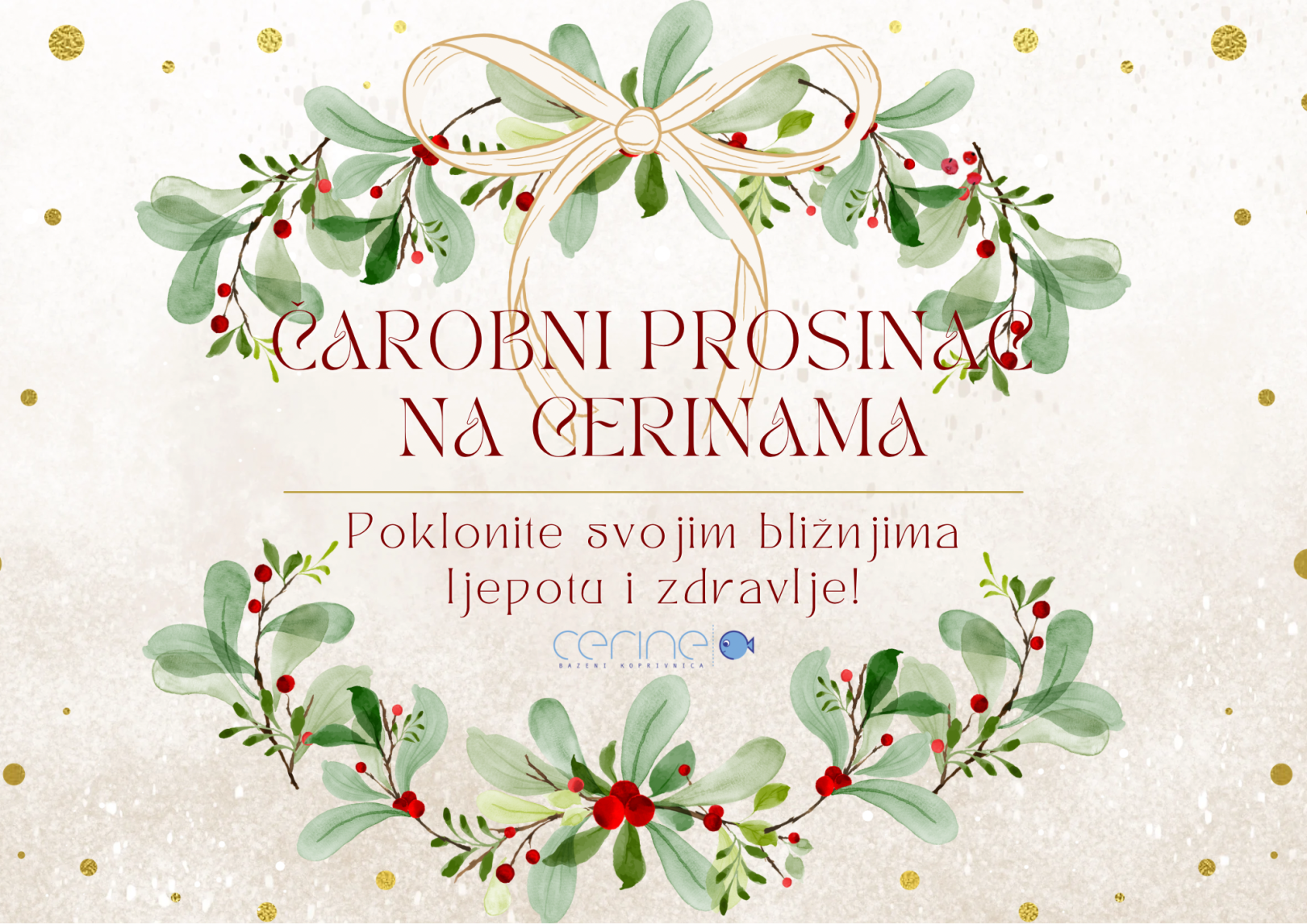 Bazeni Cerine transformirat će se u pravu zimsku bajku. Božićni ukrasi, svjetlosne instalacije i topla atmosfera unose duh prosinca u svaki kutak objekta, a tu su i prigodni gastronomski specijaliteti s okusima prosinca – kuhano vino, tople čokolade i sezonske poslastice.