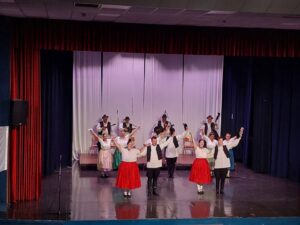 U prepunoj kulturnoj dvorani Doma XIV. divizije Senovo članovi folklorne i tamburaške grupe KUD-a Delovi predstavili su se pjesmama i plesovima iz Podravine i Zagorja.