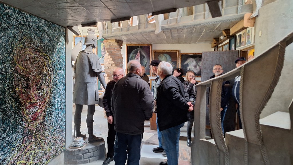 Domaćini, otac i sin – Petar i Mihael Kolarić, su dočekali goste i proveli ih kroz svoje umjetničko stvaralaštvo. Petar Kolarić, poznat po skulpturama u betonu, reljefima i zidnim slikama, oduševio je prisutne impozantnim djelom „Posljednja večera“, izrađenim u prirodnoj veličini. S druge strane, Mihael Kolarić, akademski slikar i svestrani mladi umjetnik, predstavio je svoju bogatu kolekciju slika i radova u ateljeu, a atmosferu je dodatno oplemenio i vlastitim muziciranjem na klaviru.