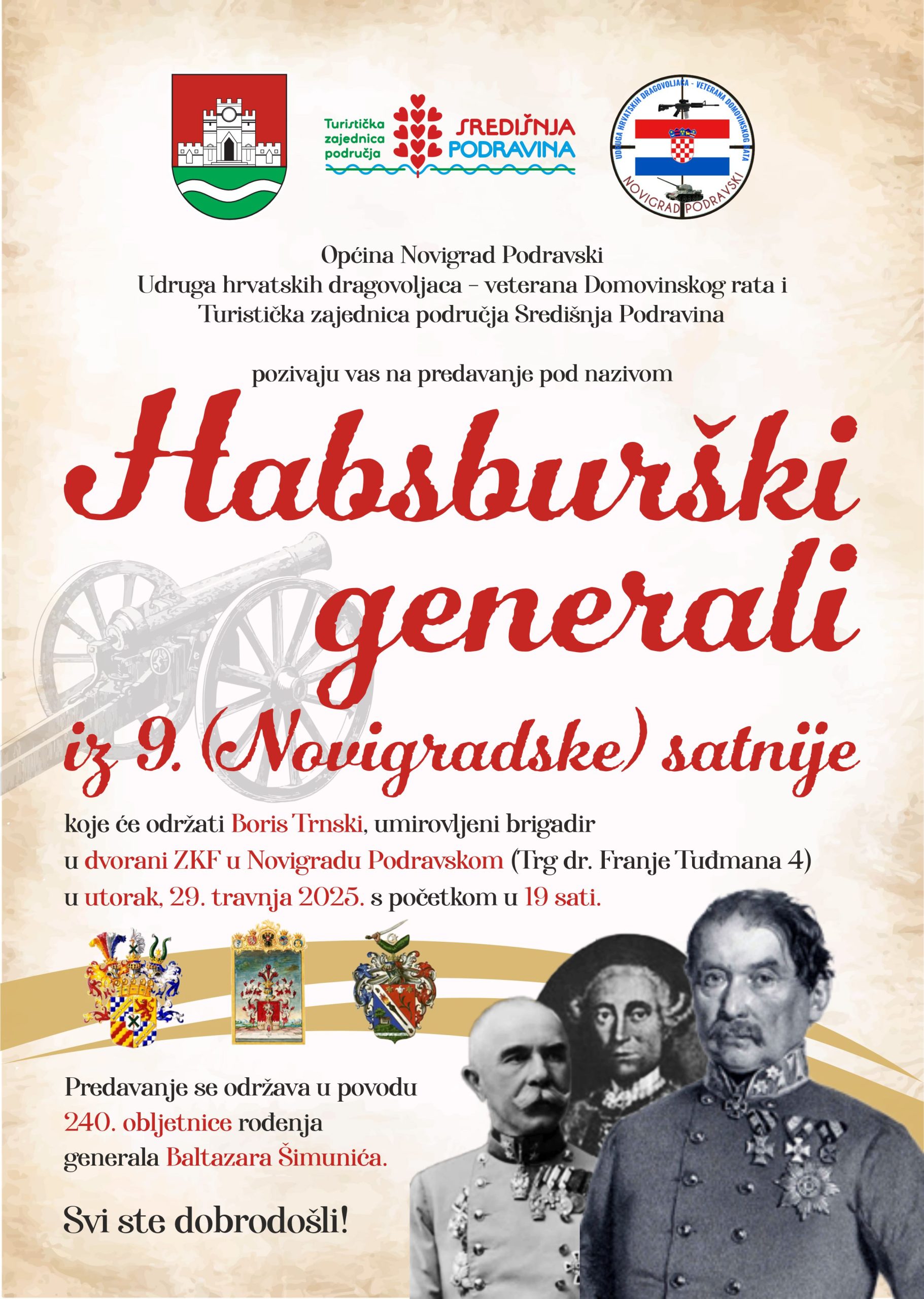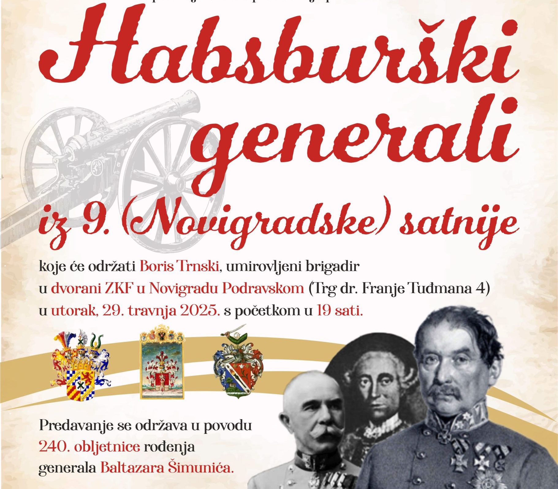 U utorak 29. travnja 2025. u Novigradu Podravskom održat će se povijesno predavanja o habsburškim generalima iz 9. Novigradske satnije koje će održati umirovljeni brigadir Hrvatske vojske Boris Trnski. Najviše riječi bit će o barunima Šimuniću, Bogatu i Mikašinoviću.