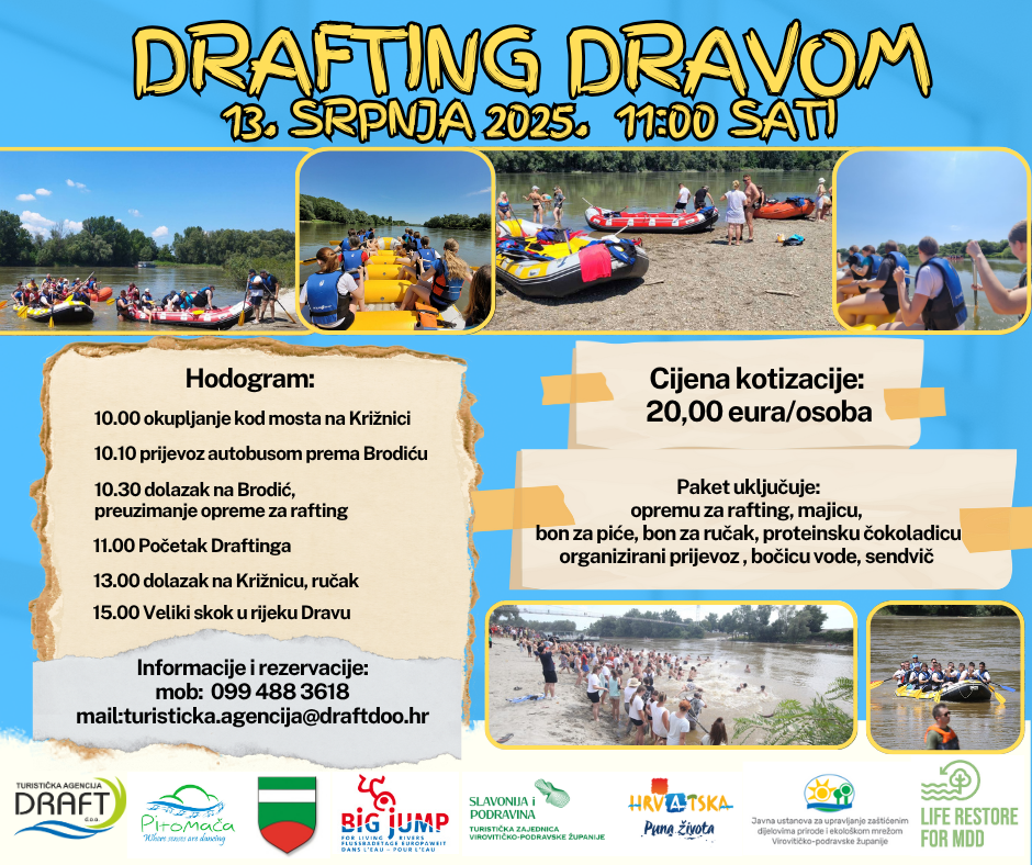 Pridružite se jedinstvenoj avanturi “Drafting Dravom” na relaciji Brodić – Križnica u sklopu popularne manifestacije Big Jump na Križnici!