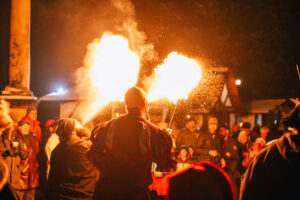 Ovaj sajam čuvaju nočobdije, zaštićen je drvenim palisadama i ulaznom kulom, jaslice su sačinjene od živih životinja, nema plastike, orašara, Djeda Mraza, kineskih lampica i uobičajene božićne glazbene kulise, već su u središtu zbivanja putujući trgovci, vitezovi koji se kupaju u bačvi na otvorenom ili pak gutači vatre i žongleri, ističu organizatori.