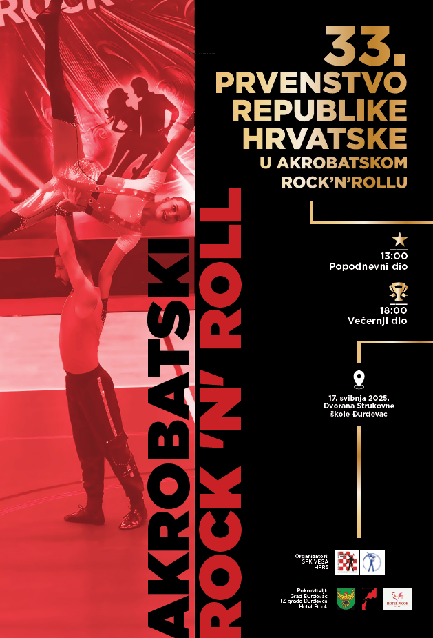 U subotu, 17. svibnja 2025., sportska dvorana Strukovne škole u Đurđevcu bit će domaćin 33. Prvenstva Republike Hrvatske u akrobatskom rock ‘n’ rollu – najvažnijeg nacionalnog natjecanja u ovom atraktivnom sportu.