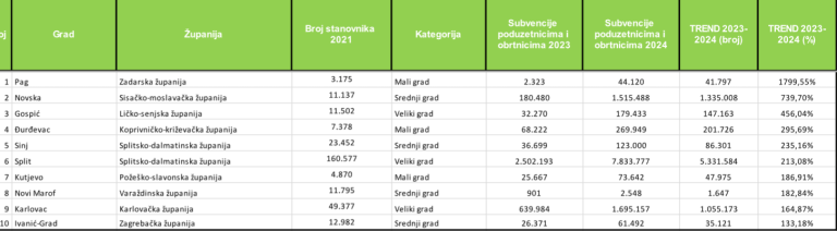 Ovaj rast ukazuje da mjere u Grada prema poticanju razvoja lokalnog gospodarstva kroz različite oblike podrške. Subvencije uključuju financijsku pomoć za razvoj poslovanja, sufinanciranje opreme i tehnologije, poticaje za samozapošljavanje, edukacije te druge oblike podrške poduzetnicima i obrtnicima.