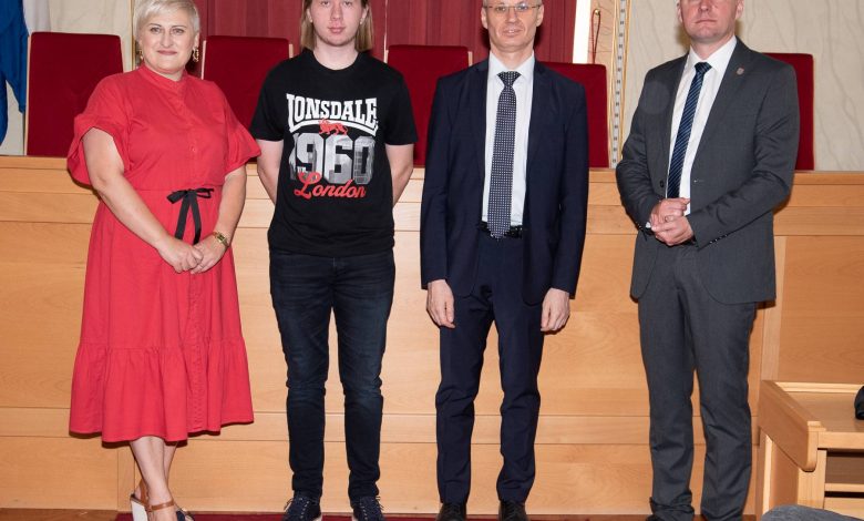 U Velikoj vijećnici Osječko-baranjske županije, Edi je u pratnji svog mentora, profesora Tihomira Robotića, primio ovo vrijedno priznanje, koje predstavlja još jednu potvrdu iznimne kvalitete Tehničara za računalstvo te vrhunske nastave koja se provodi u školi.