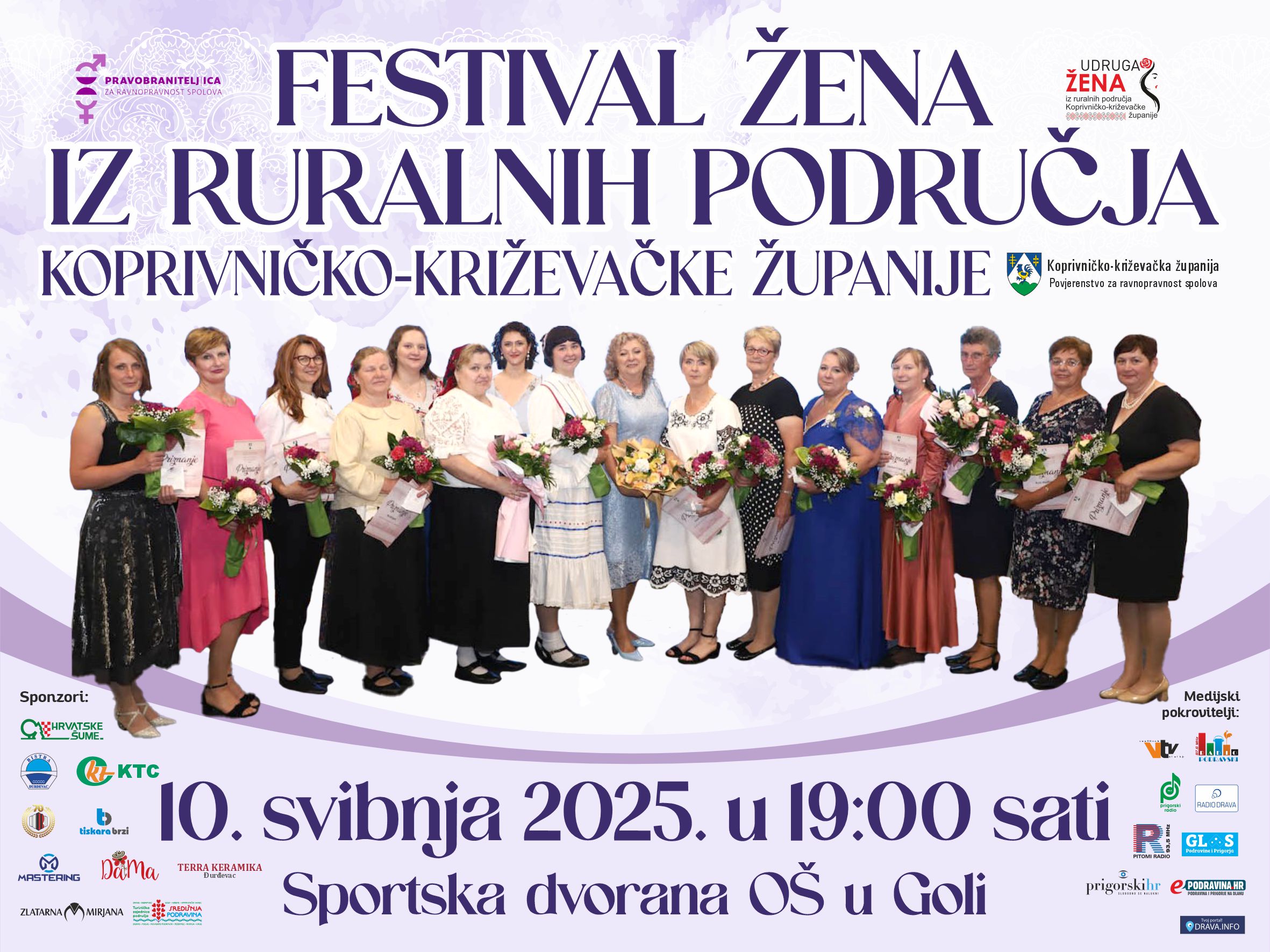 Festival žena iz ruralnih područja Koprivničko-križevačke županije će se održati u Školsko sportskoj dvorani OŠ Gola 10. svibnja u 19 sati.