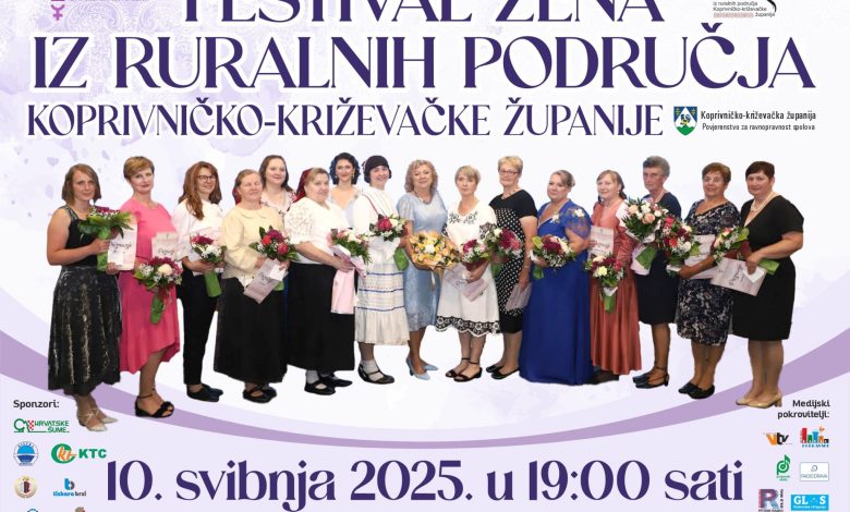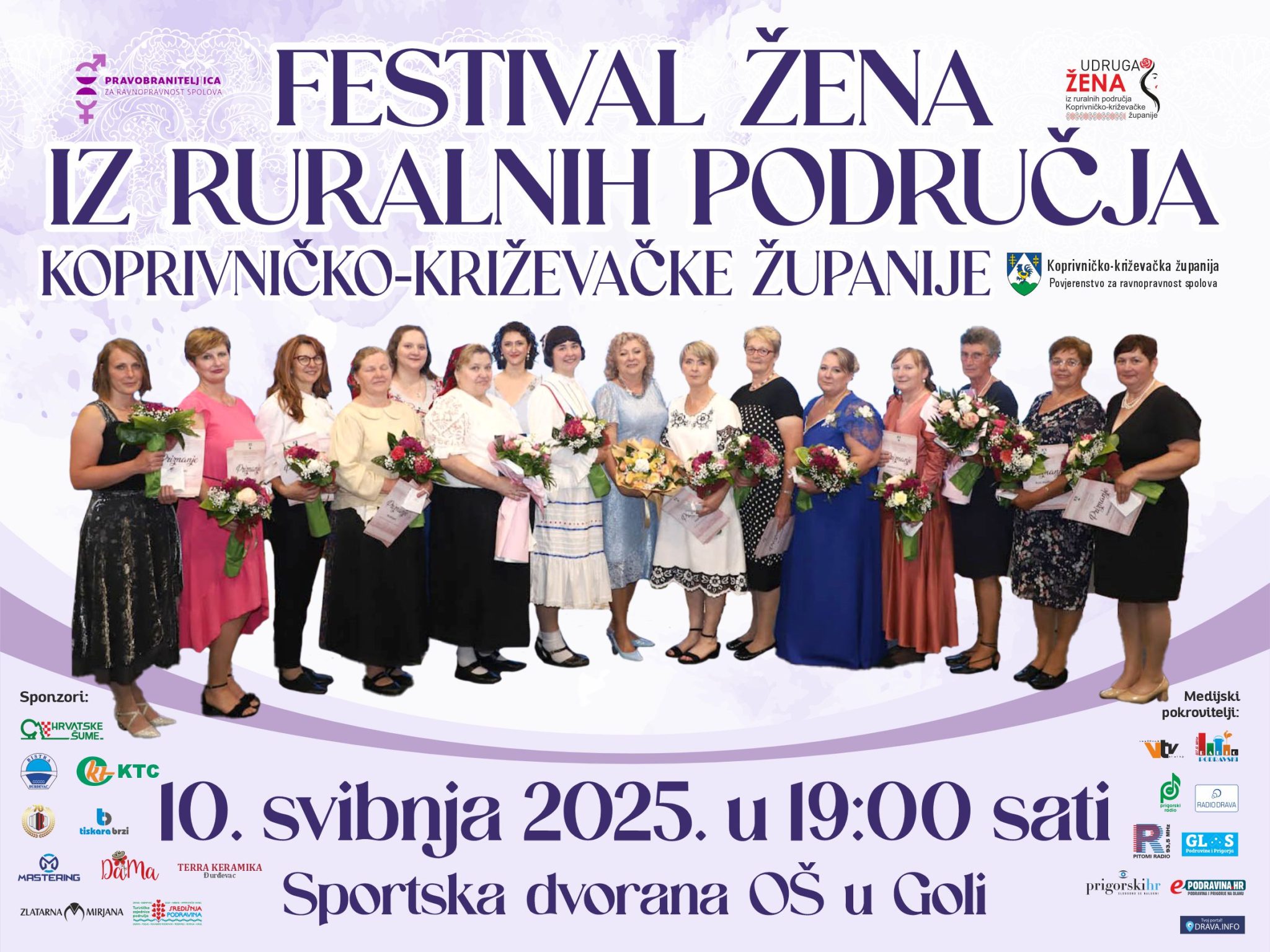 Festival žena iz ruralnih područja Koprivničko-križevačke županije će se održati u Školsko sportskoj dvorani Osnovne škole Gola, ove subote 10. svibnja, s početkom u 19 sati.