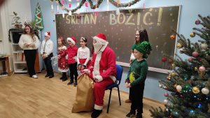 Svima su čestitali Božić i novu godinu te pokazali da se raduju zimi i zimskim radostima. Na kraju priredbe, kao što je prošle godine i obećao, stigao je Djed Mraz koji je s djecom i zaplesao. Donio je radost, sreću i vreće pune poklona kojima je darivao svako dijete. Poručio im je da i dalje budu tako dobri i vrijedni te da će doći i sljedeće godine.
