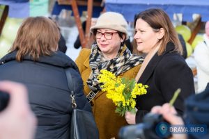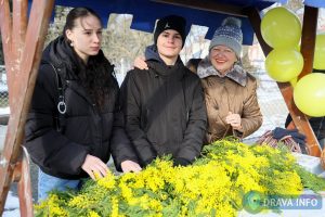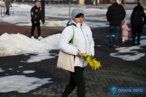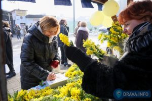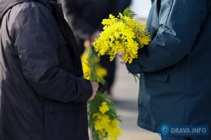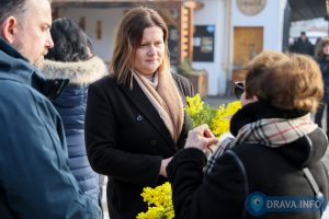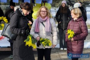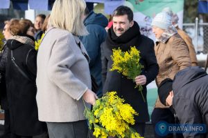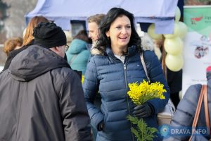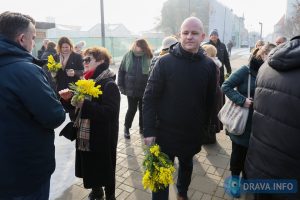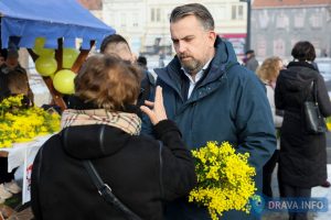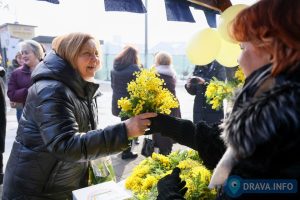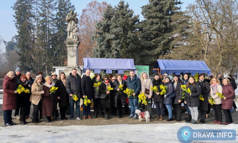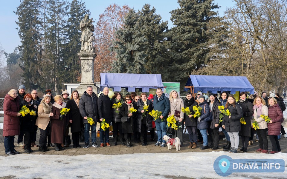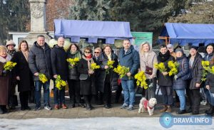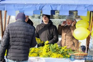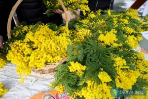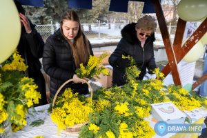 Članovi županijske Lige protiv raka tako na štandu kod gradske tržnice u Koprivnici dijele grančice mimoze, simbol ove javnozdravstvene akcije.
