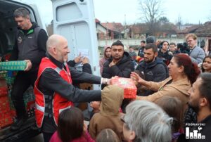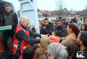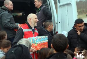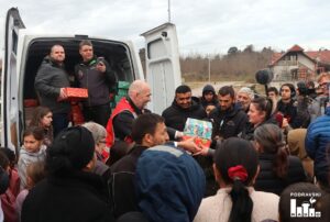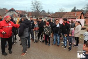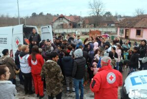 FOTO Djeci đurđevačkog romskog naselja Stiska podijeljeni božićni paketi u akciji Gradskih društava Crvenog križa iz Đurđevca i Slatine
