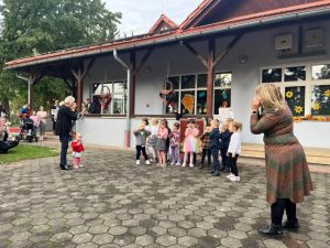 U dvorištu vrtića kulturno-zabavni program pripremile su srednja skupina Gljivice i nešto stariji Balončići sa svojim odgojiteljicama.