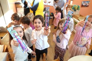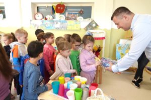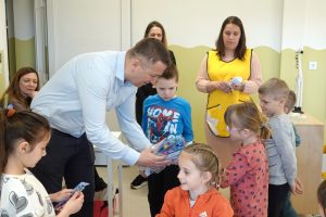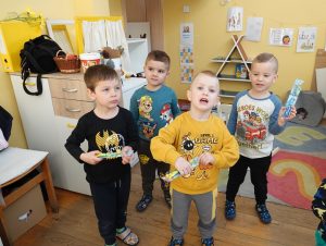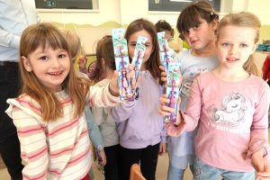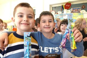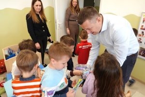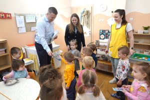 Djeca su s oduševljenjem birala oblik i boju četkice te pojasnila gradonačelniku kako se peru zubići, nakon čega su brižno nove četkice pospremili u svoje ormariće.