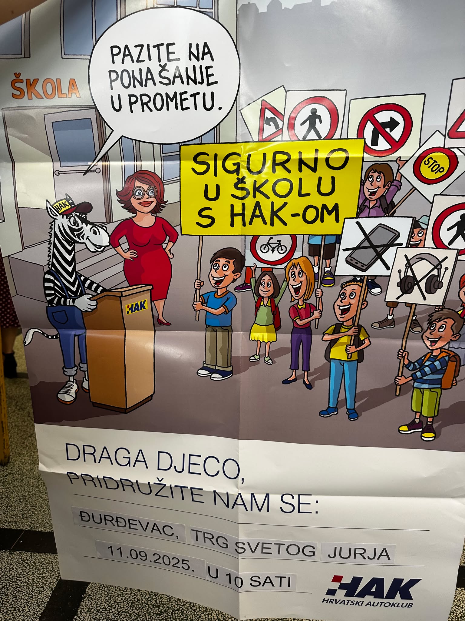 Škola svake godine surađuje s HAK-om kroz predavanja i održavanje radionica o sigurnom korištenju bicikala i učenju prometnih pravila i znakova, a ono će se u četvrtak u 10 sati održati na trgu.