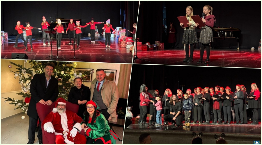 U prigodnom programu mališani su uživali u pjesmi i plesu učenika Osnovne škole Braće Radić i zbora Rima, a posebno veselje izazvao je dolazak Djeda Božićnjaka.