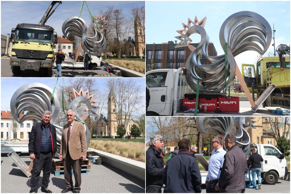 U tijeku je postavljanje skulpture pijetla na Trgu sv. Jurja u Đurđevcu.