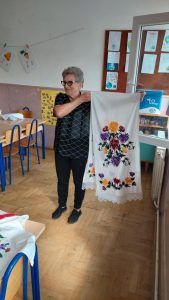 – Griješilo se, „zaputavalo“ se, krivo se bolo, bilo je vruće, bilo je teško, no nije se odustajalo. Budući da na nastavi domaćinstva nikad dovoljno vremena tako ni jučer ga nije bilo dovoljno, no to je razlog više da se radionica ponovi i utvrdi, još koji puta, jučer učeno gradivo o „našivavanju“. Ovom radionicom kod nekih učenika se je rodila ljubav i svladala tehnika. Jedan od jako važnih razloga održavanja ove radionice je osvještavati učenike od malih nogu koliko je ručni rad divan, izazovan i težak te koliko je vremena i muke uloženo u isti i kako kad jednog dana se susretnu s njim, bilo u ormarima ili drvenim škrinjama svojih baka, isti dodiruju i gledaju sa strahopoštovanjem i divljenjem, a ne kao običnu krpu koja samo smeta i koju se treba baciti na obližnji otpad. Zahvaljujemo našim gošćama na dolasku i veselimo se nastavku druženja s njima – poručila je razredna učiteljica Maja Pandur Škudar.