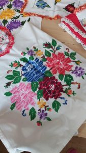 Nakon uvoda, učenici su sa svojim gošćama prionuli radu. Za tu priliku učenici su donijeli domaće platno, igle te konac za „našivavanje“.