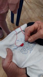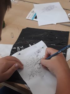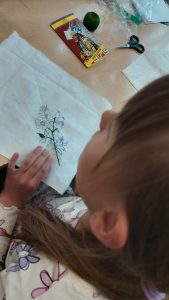 Budući da su trenutno u punoj snazi projekta o ljekovitom bilju, te su brali šipak i kamilicu, crtali su motiv šipka i kamilice, preslikali ih na platno, a potom prionuli „napeljavanju“ igli i „našivavanju“.