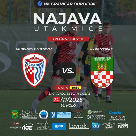 Utakmica 14. kola Treće NL Sjever između NK Graničara i NK Bilogora 91 iz Grubišnog polja, koja je trebala biti odigrana proteklog vikenda, odgođena je zbog vremenskih uvjeta.