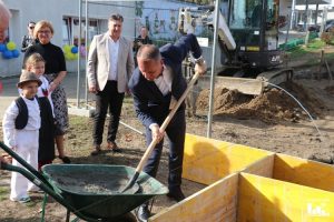 Uz blagoslov pitomačkog župnika Darka Kelemenića, načelnik Željko Grgačić, saborski zastupnik Josip Đakić, župan Igor Andrović i polaznici Dječjeg vrtića „Potočnica“, zajednički su položili kamen temeljac.