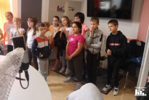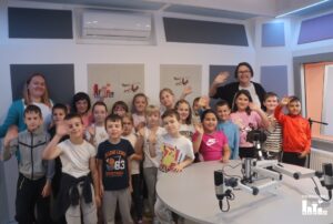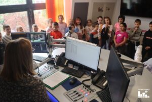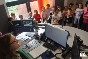 Učenici 2.a razreda Osnovne škole Đurđevac, u pratnji učiteljice Željke Mihočka i tete Maje Prelec Filipović, a u sklopu nastave iz Hrvatskog jezika i obrade radijskih emisija, posjetili su Podravski radio kako bi naučili koji je posao radijskog voditelja, kako nastaje radijska emisija, koliko pjesama ima u fonoteci, koji je posao novinara, što znači marketing i kako se montira reklama.