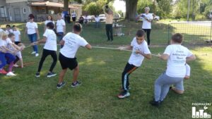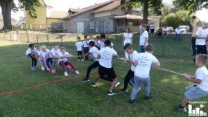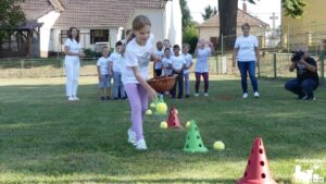 Tako su oni najmlađi igrali starinske igre na modernizirani način pa su se tu pronašle discipline skakanje u vreći, potezanje užeta, nošenje oraha u žlici, igranje školice ili razreda, sadnja krumpira (loptica) te skakanje u dalj.