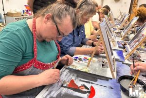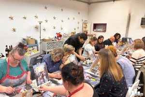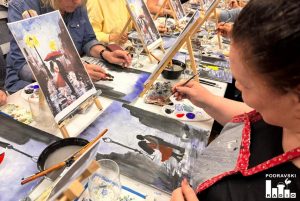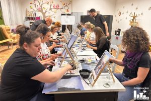 Radionicu je vodio akademski slikar Mihael Kolarić uz gostovanje Udruge Peski Art. Radionica je privukla veliki broj sudionika koji su kroz upute voditelja oslikavali slike na platnu i uzivali u okusima vina. Radove koje su sudionici sami izradili na kraju radionice ponijeli su svojim kućama. Radionici i slikanju se pridružio i predsjednik Udruge Peski Art Franjo Mihočka.