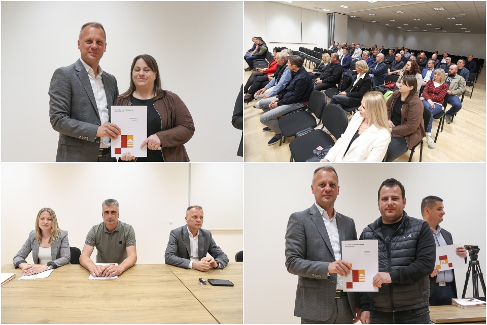 – Dodijelili smo ugovore za naše poduzetnike gdje smo raspisali natječaj potpore male vrijednosti i gdje se javilo 52 poduzetnika koji su ispunili uvjete natječaja, te odluke za tradicijske obrte. Poduzetnici su se javljali za rekonstrukcije, adaptacije ili uređenja prostora, nabave opreme, alata, računalne opreme, sudjelovanja na izložbama na sajmovima, odnosno, ono što su bile prihvatljive aktivnosti. Iako smo predvidjeli manje sredstava, odlučili smo ih povećati kako bi svi oni koji su zadovoljili uvjete i dobili svoje potpore. Na ovaj način brinemo za naše glavne pokretače gospodarstva, naše poduzetnike i obrtnike. Oni su ti koji čine našu županiju još boljom i čvršćom. Zahvaljujući njima imamo i pozitivne statističke pokazatelje, kako u rastu gospodarstva, zaposlenosti, smanjenja nezaposlenosti, odnosno sve ono što su pozitivni ekonomski pokazatelji. Upravo su oni svojim radom, inovativnošću i hrabrošću pokazali da se mogu nositi sa svim izazovima, ali isto tako da mogu biti uspješni i uhvatiti svaku priliku i na tome zahvaljujem – rekao je župan Andrović.