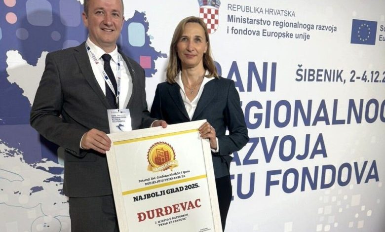 U izrazito jakoj konkurenciji, Grad Đurđevac osvojio je drugo mjesto u kategoriji “Najboljeg grada u povlačenju sredstava iz EU fondova”, potvrdivši status jednoga od najuspješnijih hrvatskih gradova kada je riječ o dugoročnom i sustavnom korištenju europskih sredstava. Ovo priznanje Đurđevcu je dodijeljeno temeljem ostvarenih rezultata, kvalitetne pripreme i provedbe projekata.