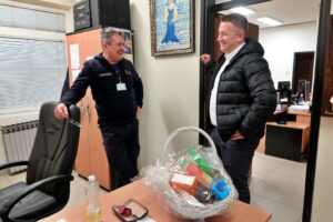 Gradonačelnik je ovom prilikom zahvalio svim djelatnicima žurnih službi grada Đurđevca na predanom radu kroz čitavu 2023. godinu i zaželio im što manje intervencija. Uz lijepe želje u Novoj godini, dežurne djelatnike razveselio je i gradski kalendar te košare pune kolača, sokova, voća, grickalica i kave.