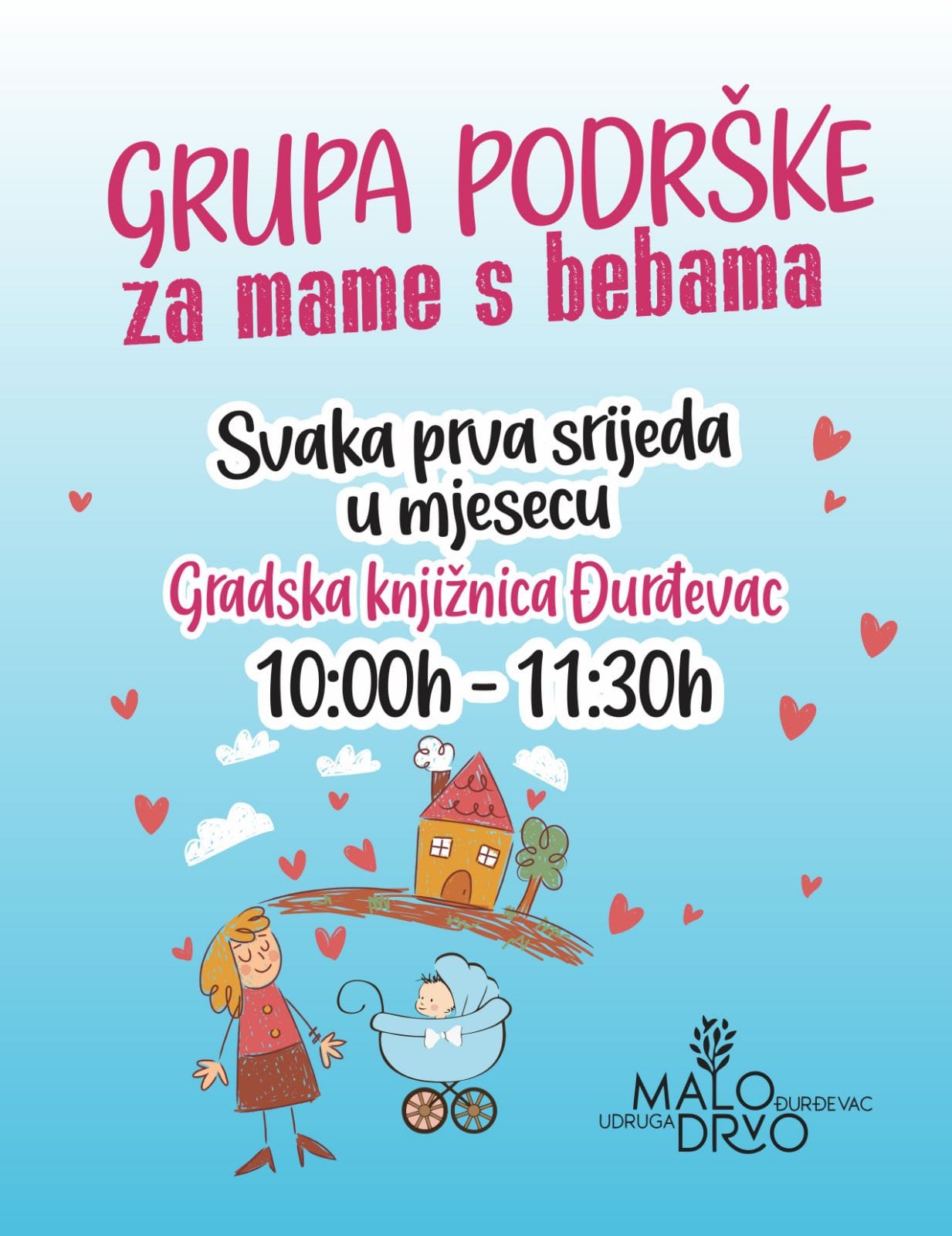 Ove srijede, 5. studenog u Gradskoj knjižnici Đurđevac održat će se grupa podrške za mame s bebama u organizaciji Udruge Malo drvo Đurđevac-