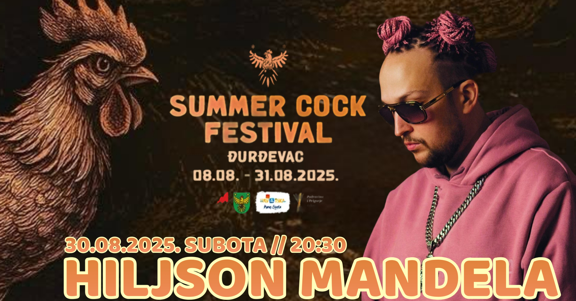 Subotnja večer, 30. kolovoza, ponovno vraća publiku na Trg svetog Jurja, gdje od 20:30 sati stiže popularni reper Hiljson Mandela. Ovaj karizmatični izvođač svojim će hitovima zasigurno rasplesati i raspjevati đurđevačku publiku te donijeti moderni ritam u završnicu kolovoškog vikenda.
