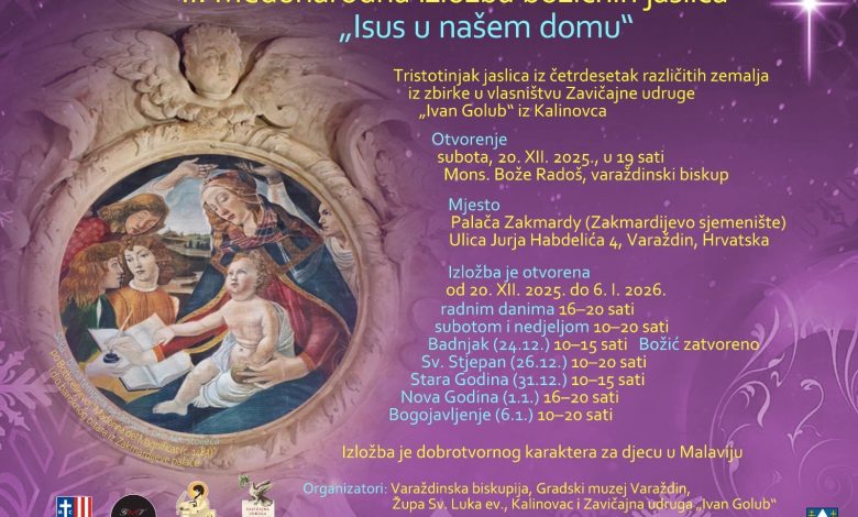 Ovogodišnja izložba bit će postavljena u Palači Zakmardy (Ul. Jurja Habdelića 4, Varaždin), a svečano otvorenje održat će se u subotu, 20. prosinca 2025. u 19:00 sati. Izložba ostaje otvorena do 6. siječnja 2026.