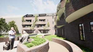 Jedan od primjera su balkoni — svaka soba ima izlaz na balkon koji je povezan sa susjednom sobom. Balkoni sadrže male prirodne vrtove, izvedene kao visoke gredice, čime su pristupačni i osobama smanjene pokretljivosti. Korisnicima se time omogućuje da, u skladu sa svojim mogućnostima, samostalno brinu o tim vrtovima. Na taj način doprinose stvaranju zelene fasade zgrade, razvijaju osjećaj zajedništva u manjim, intimnijim skupinama te potiču svoju kreativnost.”