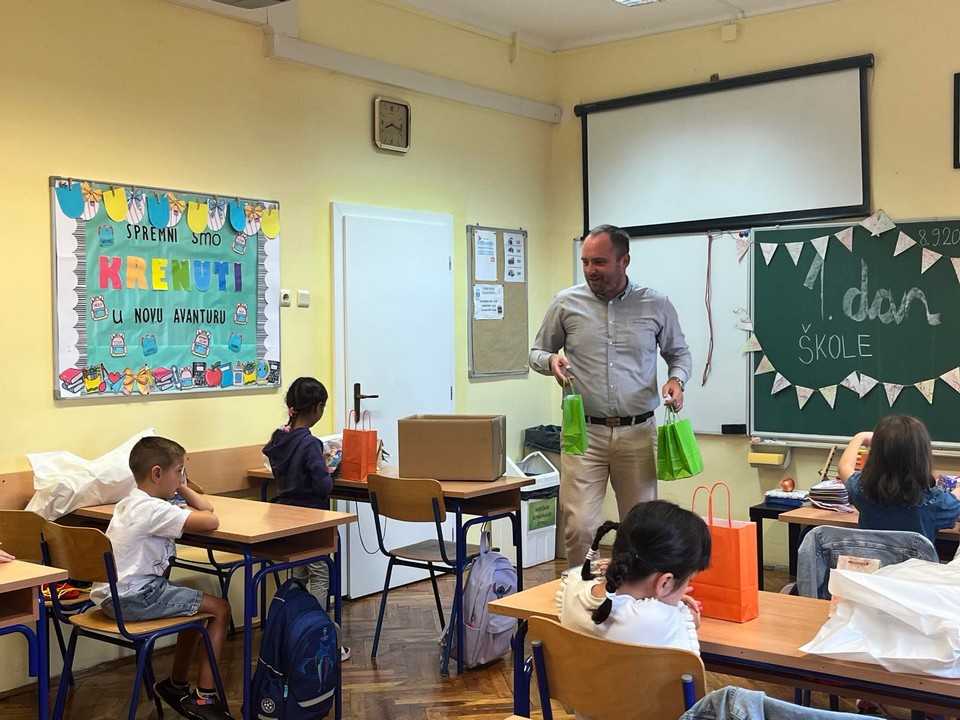 KOPRIVNIČKI IVANEC Načelnik Vrabelj prvašićima podijelio poklone, svim učenicima osigurane besplatne radne bilježnice i likovne mape