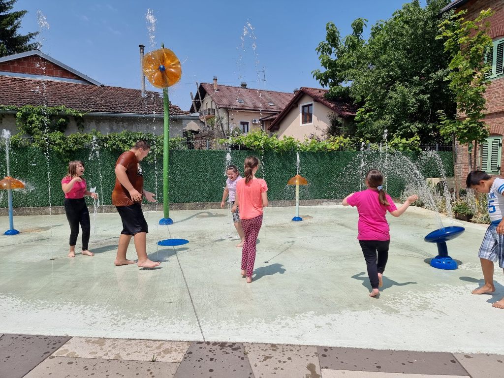 Na radost učenika i djelatnika, u školskom dvorištu otvoreno je posebno vodeno igralište – prostor prilagođen djeci, gdje su se mališani mogli bezbrižno prskati, kupati i uživati u toplim sunčanim danima.