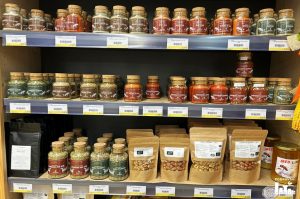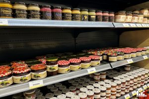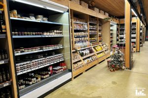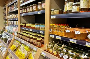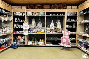Na policama se mogu pronaći domaći proizvodi, vina i razni suveniri.