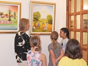 Tako su mališani vidjeli što sve autori ovog dijela Podravine, kroz predstavljenih 55 radova smatraju pod pojmom Podravski slikopisi, a razgledajući izložbu vidjeli su različite stilove i tehnike, najviše pejzaža, ali i narativnih prizora i običaja koji su vezani uz naivni likovni izraz. Sudionicima družionice predstavljen je pojam naivne umjetnosti, te realne i apstraktne kompozicije.