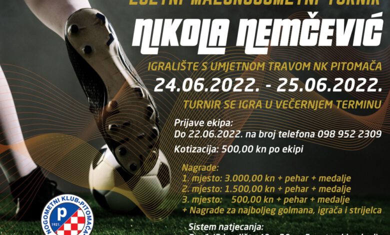 I ove će se godine u sklopu programa obilježavanja Dana Općine Pitomača, odigrati Ljetni malonogometni turnir “Nikola Nemčević” posljednjeg vikenda u lipnju, 24. i 25. lipnja na nogometnom igralištu NK Pitomača, na pomoćnom terenu s umjetnom travom.