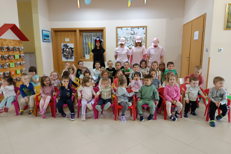 U vrtiću su je obilježili nizom aktivnosti – djeca su pogledala predstavu „Tri praščića“ u izvedbi odgojiteljica, koja je oduševila mališane i odgojiteljice su nagradili velikim pljeskom.