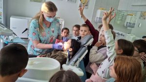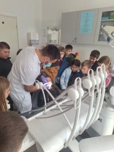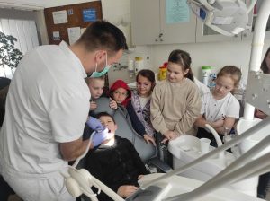 Tijekom posjeta upoznali su rad stomatologa koji su im pokazali pravilan način održavanja oralne higijene te ih potaknuli na redovite kontrole zubi.