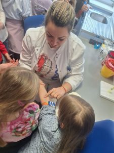 Na odjelu fizikalne terapije učenici su saznali koliko su mišići važni za kretanje i obavljanje svakodnevnih aktivnosti, ali i kako izgleda proces oporavka nakon različitih ozljeda. Djelatnice laboratorija s mnogo su pažnje učenicima objasnile postupak vađenja krvi te zašto je ona važna u dijagnosticiranju bolesti.