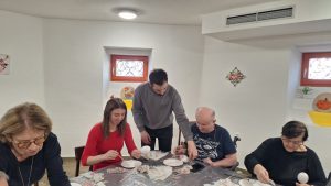 Na početku radionice sudionicima je kratko opisana tradicija ukrašavanja jajeta kao simbola novoga života te tradicijske tehnike, ali i nove tehnike budući da današnji materijali i alati daju i nove mogućnosti za stvaranje i kreativnost. Sudionici su zatim tehnikom decoupage ukrašavali pisanice, a ova tehnika je korištena upravo iz razloga kako bi se omogućilo svim sudionicima da uspješno izrade pisanice budući da su mnogi to radili po prvi puta, a i s obzirom na njihove zdravstvene poteškoće i ograničenja.