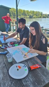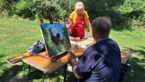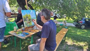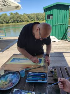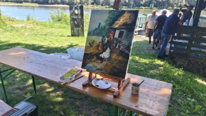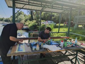 Radni dio likovne kolonije i kreativnog druženja preselio se na obalu rijeke Drave pored skele gdje su umjetnici u idiličnoj atmosferi stvarali svoja djela.