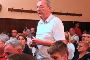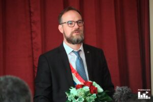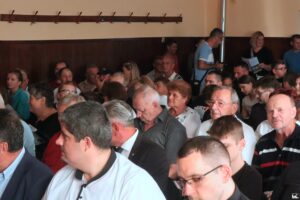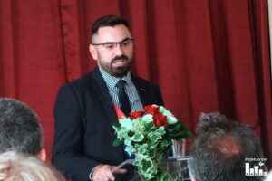 Ispred Općine Virje, prisutnima se obratio načelnik Mirko Perok;