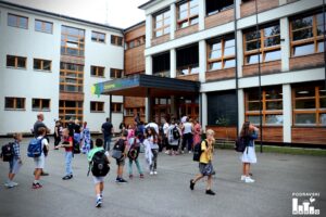 Učenike prvih razreda podijeljene u 4 razredna odjela koji su u pratnji roditelja, baka i djedova došli prvi dan u školu, pozdravili su ravnatelj Danijel Domišljanović, gradonačelnik Grada Đurđevca Hrvoje Janči i pedagog Nikola Vuković.