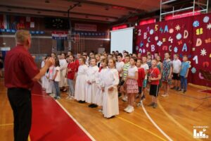 Dvadesetom dječjem sajmu prethodila je završna školska priredba u potpuno ispunjenoj školskoj sportskoj dvorani na kojoj su se virovski učenici predstavili svojim, glazbenim, plesnim, dramskim i literarnim umijećem, a potom su učenicima i mentorima koji su sudjelovali na brojnim natjecanjima podijeljene zahvalnice i priznanja.
