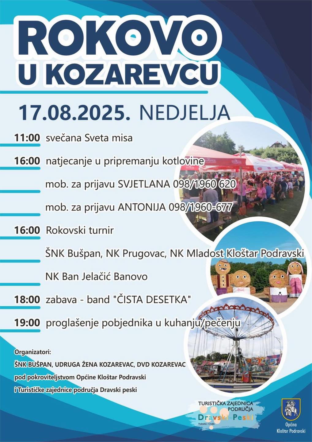 Organizatori događaja su ŠNK Bušpan, Udruga žena Kozarevac i DVD Kozarevac, uz pokroviteljstvo Općine Kloštar Podravski i Turističke zajednice područja Dravski peski.